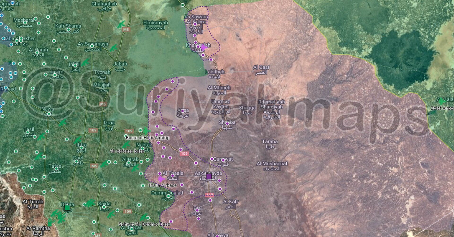 Suriyak: STG and SNA forces, supported by Bedouin units, captured key areas across Al-Surah al-Saghirah, Al-Ariqah, Al-Mazraa, and Markaz As-Suwayda, including Khalkhalah airbase and Tha’lah airbase.