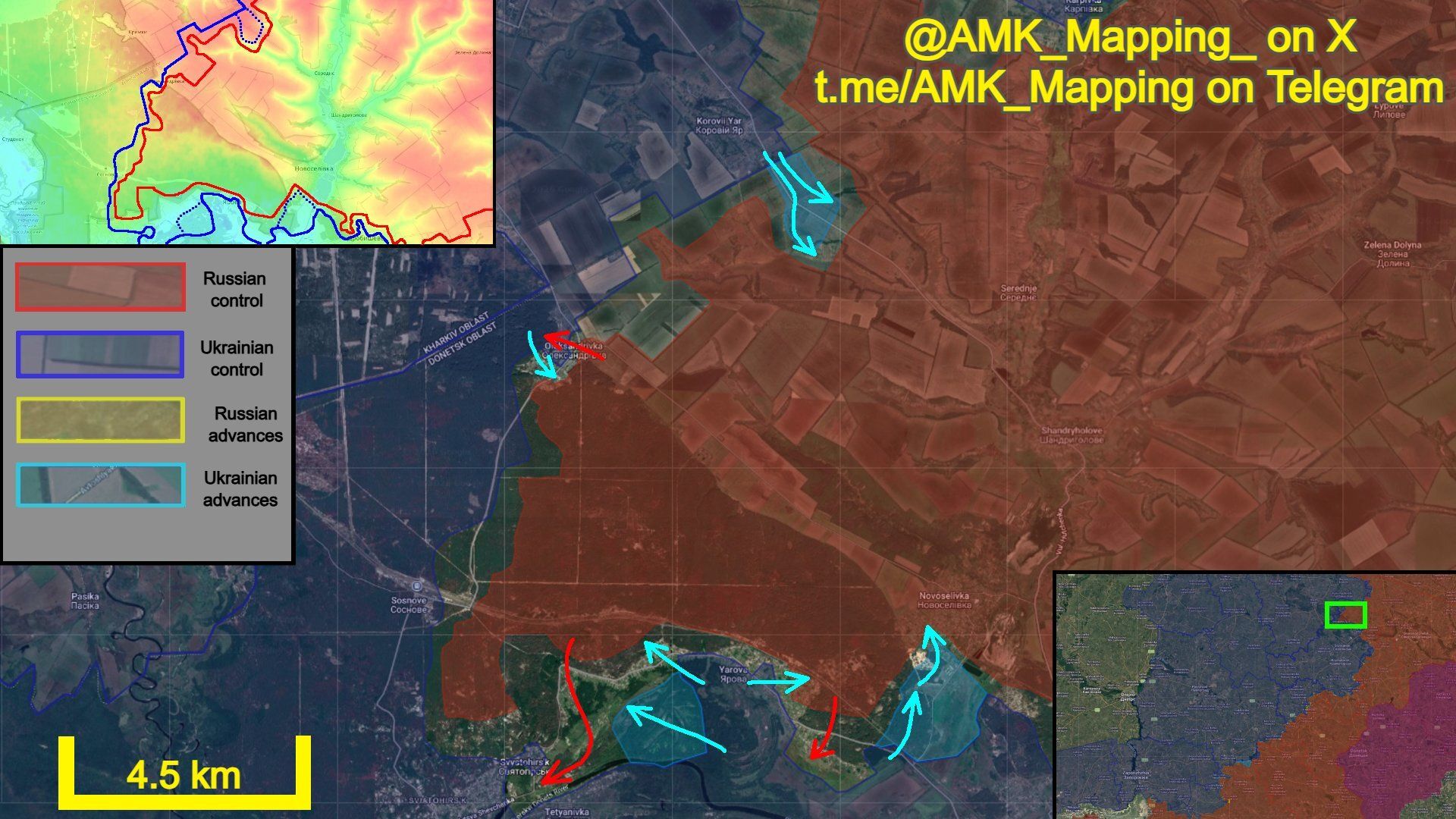 Spanish analyst Suriyak corroborates these movements, reporting Ukrainian recapture of Kosivtseve, infiltration into northern Dobropillya, and crossings of the Haichur River near Pryluky. He emphasizes that Ukrainian troops have established positions on the west bank before pushing eastward toward Dobropillya and Varvarivka, though consolidation remains incomplete.