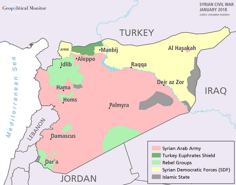Afrin located north of Aleppo, before Turkish incursion.