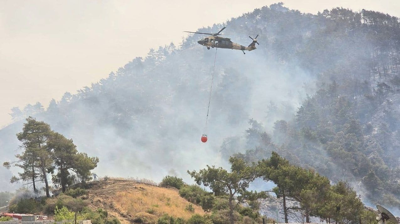 Helicopters used to put out the fires. Countries like Jordan have sent assistance.