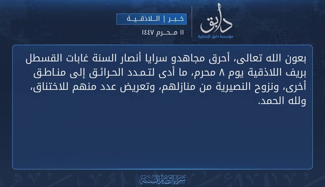 No independent evidence has confirmed the group’s claim. However, it is not without precedent. In past years, Islamic State militants set fire to agricultural land in Iraq and called for environmental sabotage as a form of asymmetric warfare. The group’s messaging, analyzed in a recent thread by Syrian researcher Hussam Hammoud, shows increasing sophistication. Its second statement, issued by religious figure Abu Sufyan al-Dimashqi, was ideologically charged and framed the fires as part of a larger campaign against the Syrian government and minority populations.