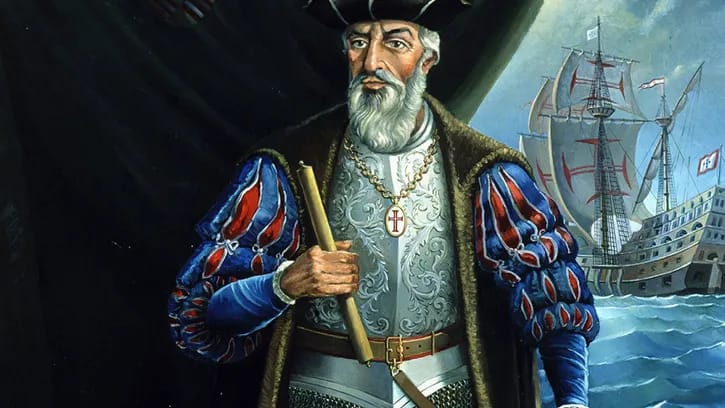 (July 8, 1497): Vasco da Gama's first voyage to India. On this day in 1497, Vasco da Gama sailed from Lisbon with a fleet of four vessels, and he ultimately opened a sea route from western Europe to Asia by way of the Cape of Good Hope, ushering in a new era in world history.