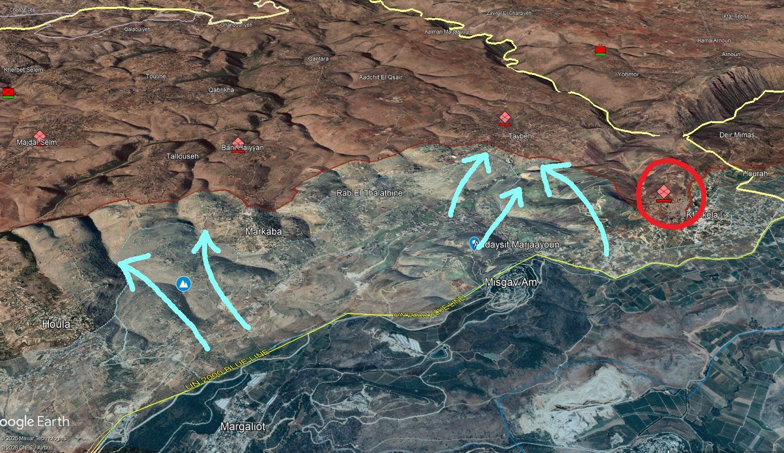 IDF forces have pushed deeper along the southern Lebanon front, advancing into southern Kfar Kela and securing the final contested sections of Odaisseh. Engineering units are now deploying, signalling potential large-scale demolition of border-adjacent structures, similar to operations seen in Gaza. Concurrently, Israeli forces are probing Taybeh from multiple directions but remain largely on the outskirts. Further west, advances between Houla and Markaba continue to consolidate control over surrounding terrain. The 91st Division is driving into Aitaroun, Maroun el-Ras, and Yaroun. Meanwhile, Hezbollah’s Radwan Unit is attempting to slow momentum through hit-and-run attacks, as anti-tank engagements persist.