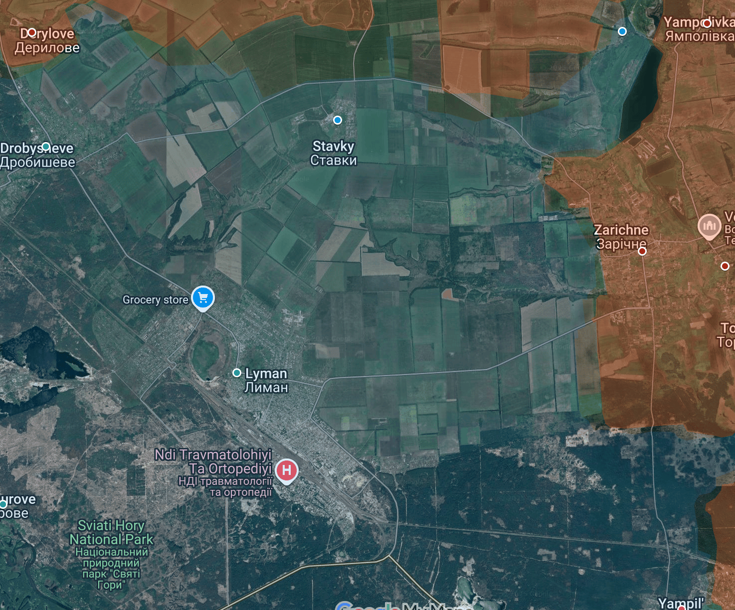 Russian forces continued advancing on the Lyman axis, making gains in and around Zarichne and securing new ground along the forests south of the village. They pushed into southern houses of Zarichne from their Zherebets River bridgehead, linking positions and clearing much of the grey zone, while also consolidating control over agricultural buildings on the western outskirts and pressing northwest toward Myrne. Further north and west, Russian assaults expanded around Karpivka, Shandryholove, and toward Stavky, while treeline positions were taken in multiple directions.