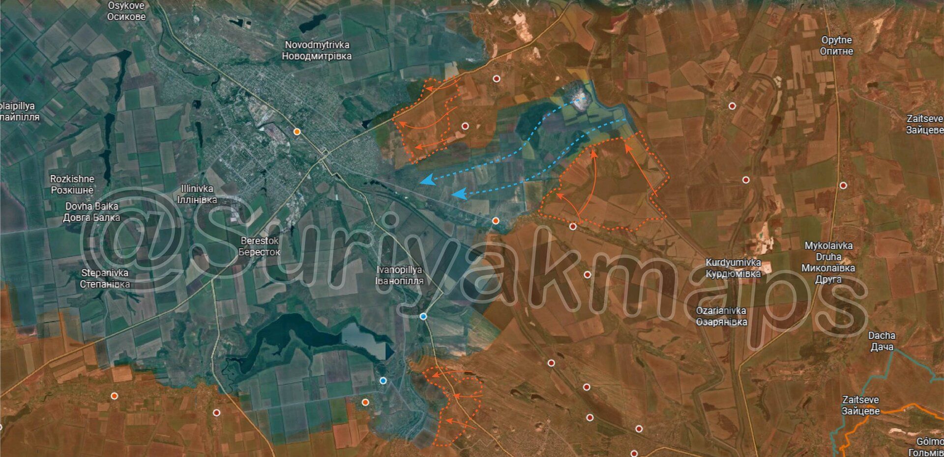 South of the city, in the Toretsk sector, Russian troops have taken full control of the Novodzerzhinskaya mine over the past nine days. From this staging area, elements of the 103rd Motorized Rifle Regiment are pushing along the Scherbynivka axis, advancing toward the northern outskirts of Scherbynivka. Which will link up to the units at the pincer movement.