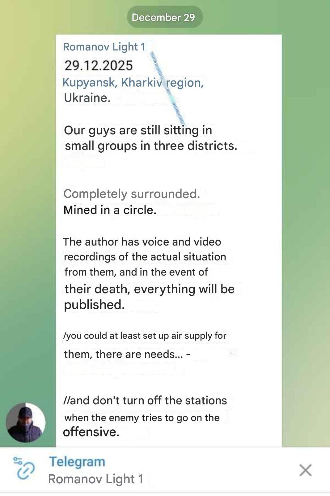 ISW has said: footage published on December 27 and geolocated on December 28 shows Russian forces operating in eastern Kupiansk during infiltration missions that did not alter terrain control or the forward edge of the battle area (FEBA). According to ISW, Russian attacks occurred in and around Kupyansk, including Mala Shapkivka, Petropavlivka, and Pishchane. ISW notes that the Russian Ministry of Defense continues to publish footage and statements claiming advances in the Kupiansk direction, likely to obscure recent operational setbacks amid mounting criticism. A Russian milblogger echoed this assessment, describing Kupyansk as a “sore point” in late December and accusing Russian command of making exaggerated claims for informational and psychological effects that were later disproven.