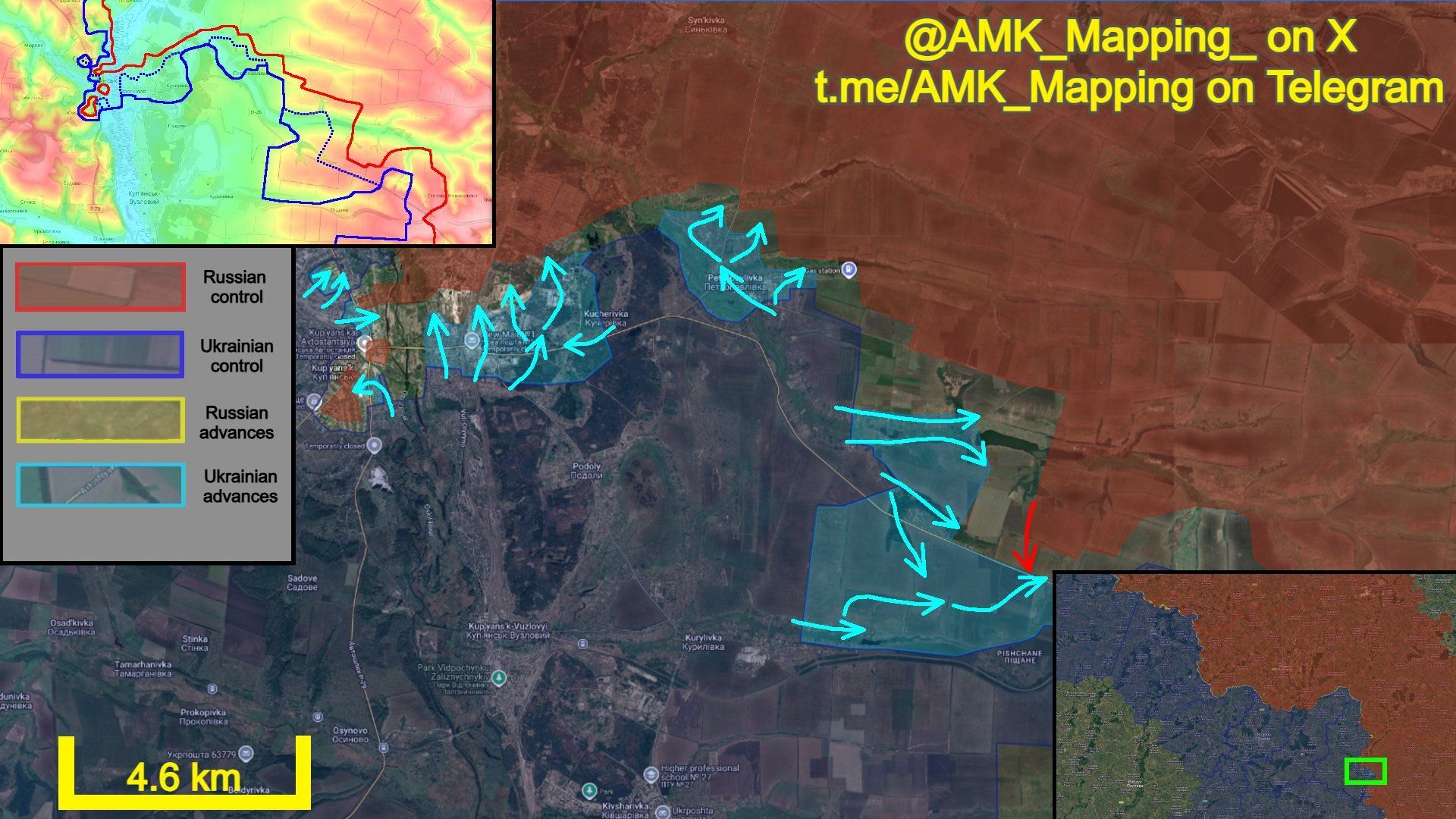 AMK_Mapping is the main source I have found discussing the Ukrainian gains in the further east villages of Kupiansk. Ukrainian units again cleared Russian DRGs from Kurylivka, advancing northeast through treelines and southeast via forested gullies, overrunning poorly consolidated Russian positions and pushing back toward the highway. Ukrainian forces also recaptured the southeastern part of Petropavlivka and secured the forest plantations to its south. Coordinated attacks from Kurylivka enabled Ukrainian assault groups to re-enter the industrial zone east of the railway line, rapidly reclaiming most of it and forcing Russian troops to withdraw from the village and adjacent forests. Russian forces are now attempting counterattacks near the highway as fighting remains fluid across the eastern approaches to Kupyansk.