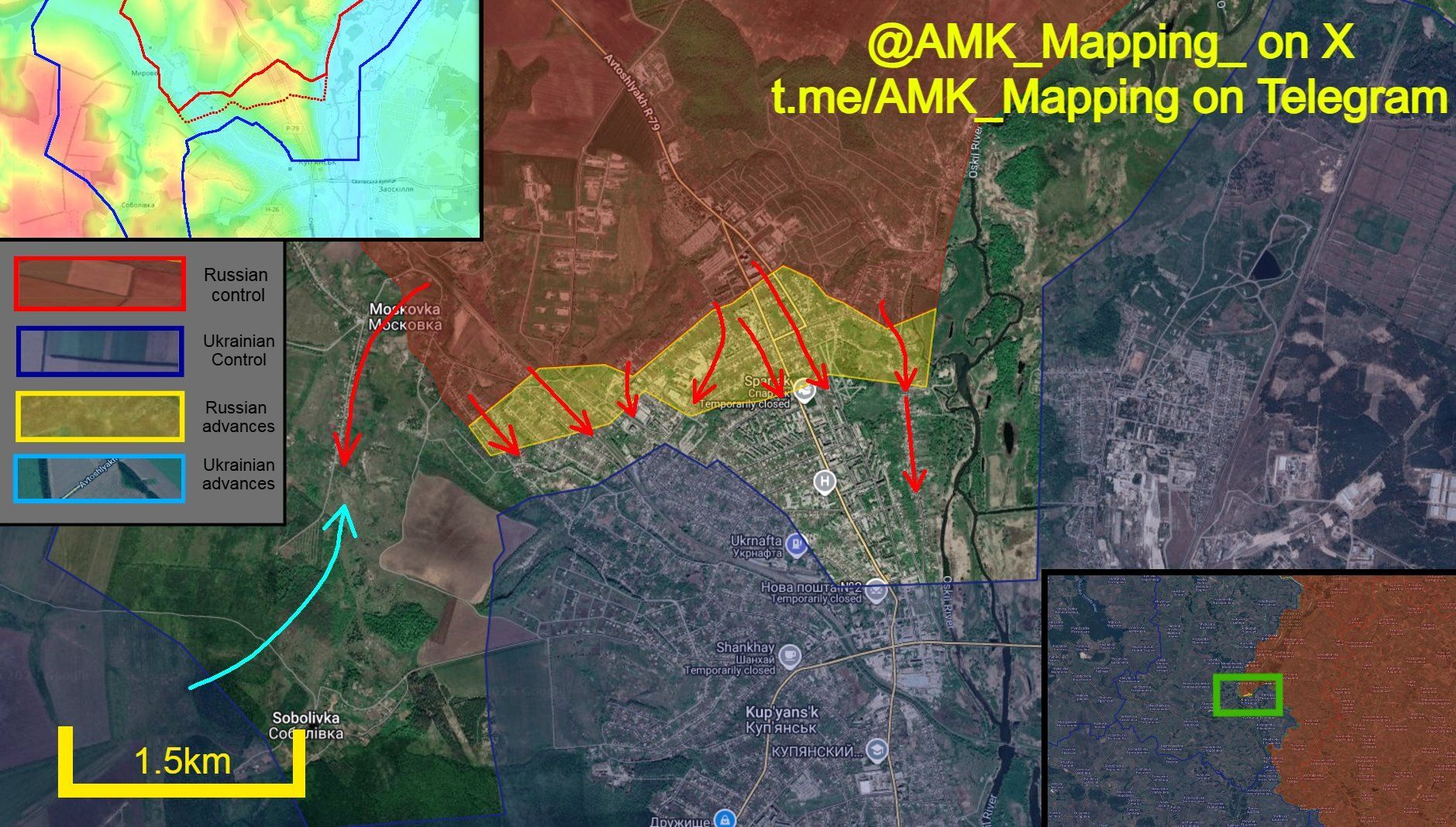 At the beginning of this week, there were rumours of a serious Ukrainian counterattack on the western flank of Kupiansk in the suburb of Moskovka (also referred to as Myrne in some sources). This followed a sudden Russian push, first by DRG units and then by infantry, which had secured parts of the suburb and pushed as far as Sobolivka, putting the last major supply road at risk. Pro-Ukrainian sources reported a successful counterattack, with Deepstate maps still showing Moskovka/Myrne under Ukrainian control, while more independent and pro-Russian outlets did not highlight such developments. But now more information has surfaced and we have a better picture.